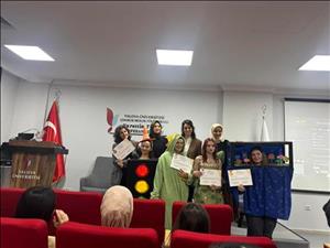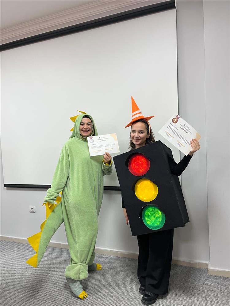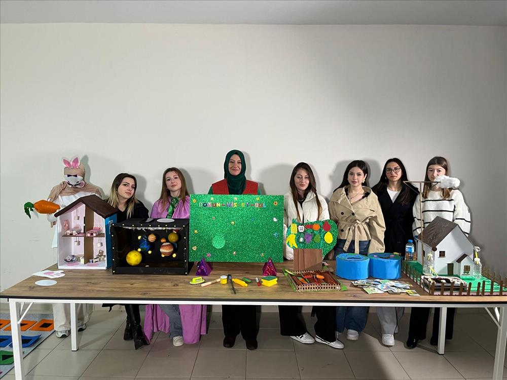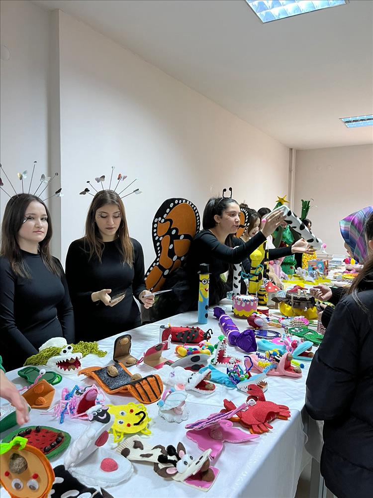 Serginin en dikkat çekici yönlerinden biri, öğrencilerin yalnızca materyal sergilemekle kalmayıp etkinliğe katılan çocuklarla birebir uygulamalar gerçekleştirmesi oldu. Bu kapsamda çocuklar için kukla gösterisi sahnelendi, etkinlik müzikli hareket çalışması ile çocukların aktif katılımı sağlanarak sona erdi. Bu sayede öğrenciler mesleki deneyim kazanırken, çocuklar da eğitici ve geliştirici etkinliklerle buluştu. Etkinliğin sonuna yaklaşırken kostüm yarışması sonucunda dereceye giren öğrenciler belirlendi. Yapılan değerlendirme ve oylama sonucunda birincilik ödülünü Elif Demir, ikincilik ödülünü Kübra Tuna ve Emel Koç, üçüncülük ödülünü ise Mine Medine Bayram kazandı. Öğrenciler, özgün tasarımları, yaratıcılıkları ve alan bilgilerini yansıtan çalışmalarıyla katılımcıların beğenisini kazandı. Etkinliğin düzenlenmesinde emeği geçen tüm akademik kadroya ve özveriyle hazırlanan çalışmalarıyla sergiye değer katan öğrencilere teşekkür ederiz.