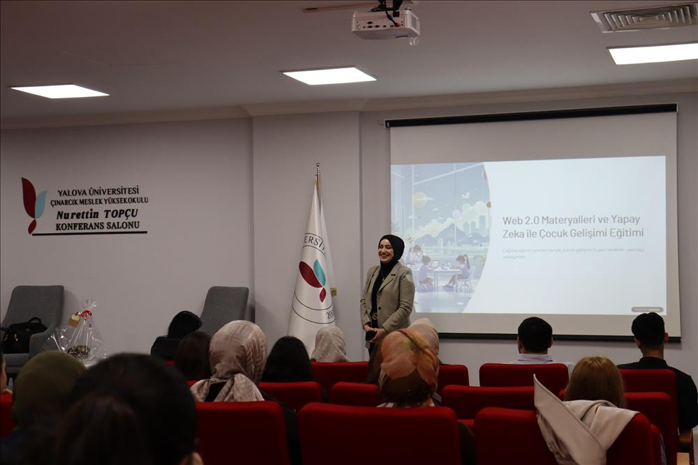 Konuşmacı olarak katılan Hatice Kılıç, kurucusu olduğu Tekno Akademi Yalova bünyesinde yürüttüğü çalışmalar hakkında bilgiler vererek, öğrencilere yapay zekâ araçlarının eğitim ve günlük hayatta nasıl daha verimli kullanılabileceğini anlattı. Söyleşide özellikle Web 2.0 araçlarıyla tasarım yapma, yapay zekâ destekli uygulamaların kullanımı ve teknolojiyi daha kapsamlı şekilde kullanmayı sağlayan dijital kısa yollar üzerinde duruldu.